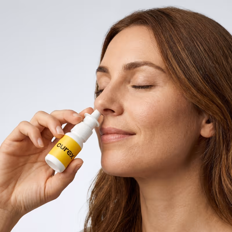 Possible side effects include nasal dryness, mild irritation, or occasional nosebleeds. These are typically mild and manageable. Let your Curex provider know about any bothersome or serious effects, so we can fine-tune your prescription if needed.